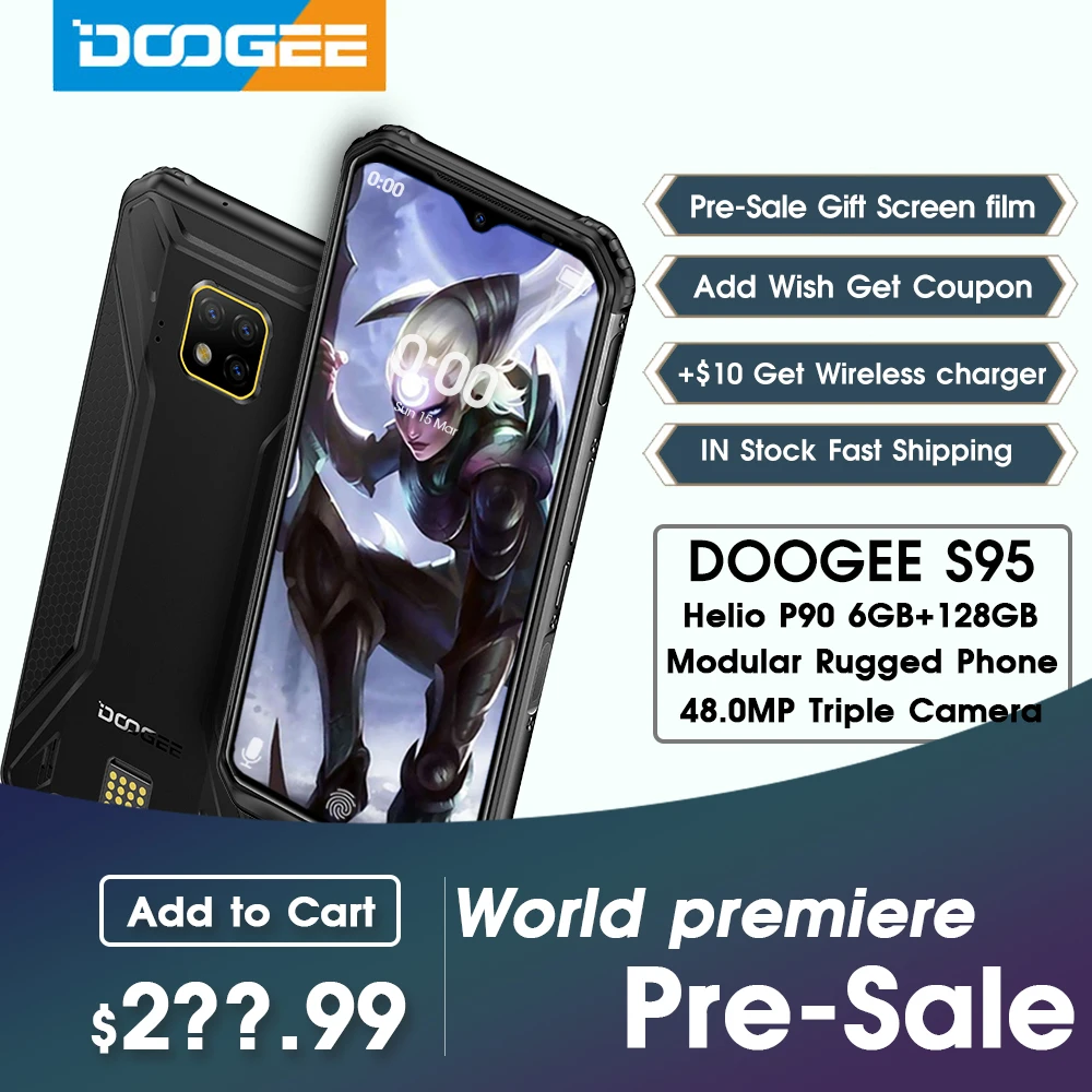 | DOOGEE S95 IP68 Modular Rugged Mobile Phone 6.3inch Display Helio P90 Octa Core 6GB 128GB 48MP Triple Camera Android 9.0 5150mAh |